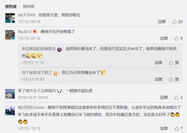 也有网友调侃腾格尔唱出了张飞和和李逵手牵手在草原上骑着自行车飞驰的感觉,而且车轱辘还是方的!更有网友说出你毁我《天堂》,我毁你歌坛的搞笑言语。