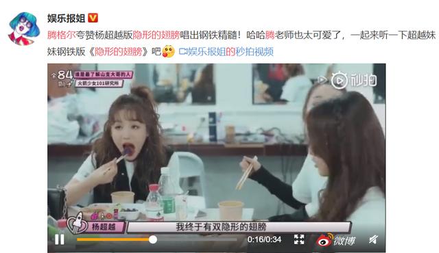 就连近日非常红的火箭少女杨超越都在节目中模仿腾格尔版的《隐形的翅膀》,腾格尔也夸赞杨超越版《隐形的翅膀》唱出了钢铁般的精髓。