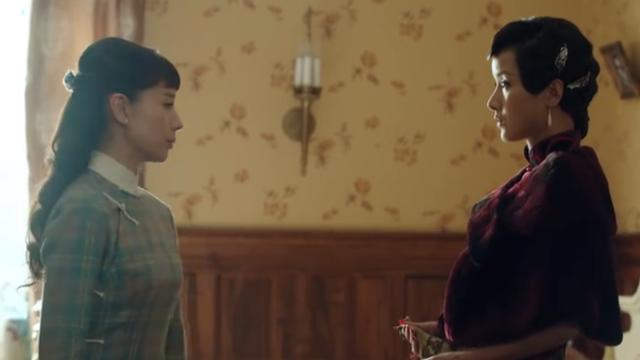 既然是民国戏自然是少不了旗袍这一服饰了!几乎所有的民国戏除了扣人心弦的剧情以外就是那些色彩风格层出不穷的旗袍了,那个年代的女人服饰没有现代这么多花样,大多数都是穿一件端庄的旗袍,不同的女人穿出旗袍的感觉也是不同,董洁的旗袍给人呈现一种素雅的感觉,在《金陵往事》中饰演董洁干妈的女子周淑慧穿上旗袍后就是两种不同的画风了!