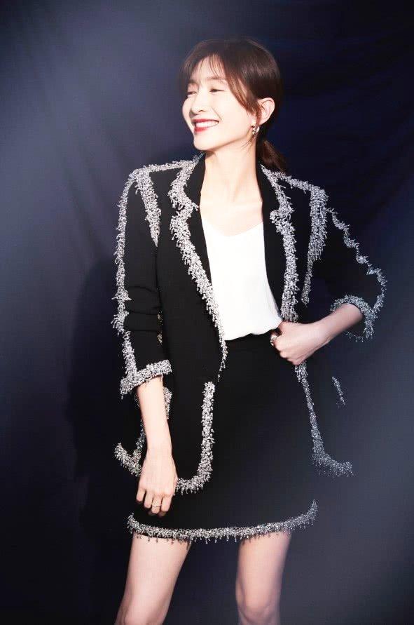 江疏影身穿着一件黑色的西装外套,非常帅气洒脱的设计,搭配灰色的流苏点缀,打破了西装的正式感,以及整体黑色带来的沉闷感,显得更加有活力感和时尚感了,内搭一件白色的简约上衣,是造型更加明亮大气了。不过,整个造型却被她的脚趾抢镜了。