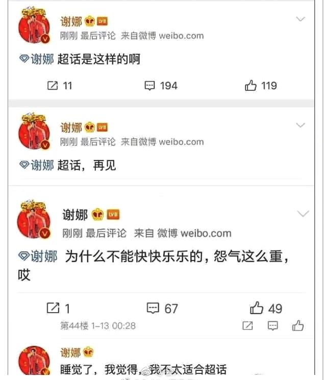 近日,谢娜在超话里发文称自己不适合超话,并质问部分粉丝“为什么不能快快乐乐的,怨气这么重,哎”。据悉,谢娜与粉丝意见发生分歧,有部分谢娜粉丝希望谢娜在综艺上能少提张杰,因此引发谢娜不悦。