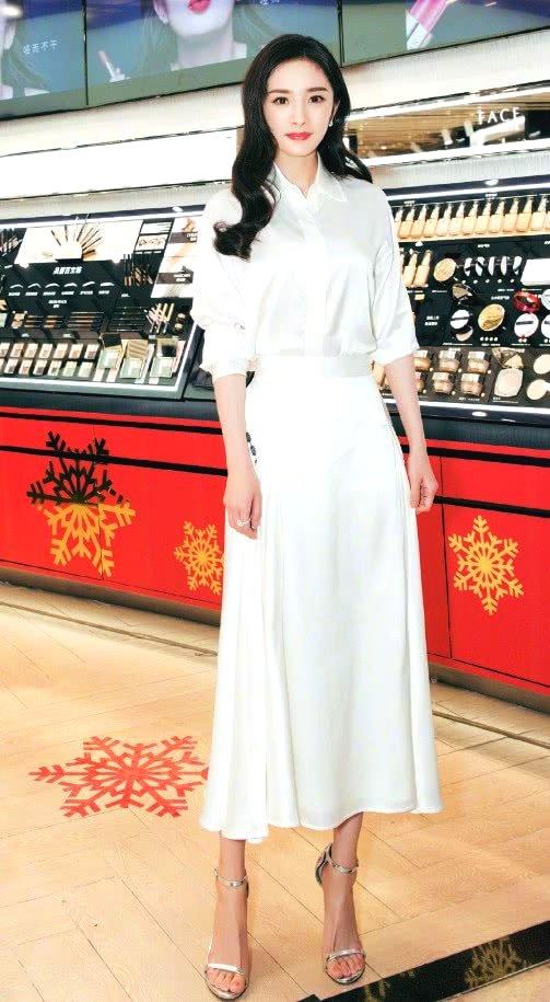 穿上衬衫搭配半身裙的杨幂也是挡住了自己的膝盖,不过这次她的裙子只到她的小腿上,而杨幂穿了一双细带高跟鞋,看起来她的一双腿也是很纤细修长的,也让杨幂看起来更加优雅了!