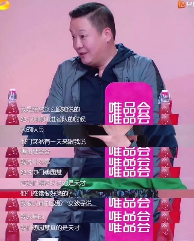 他说女儿刚进省队的时候,有个比她大的队员有天跑来说,“你家傅园慧在游泳队里说自己是天才诶”,没想到傅爸爸认真的说,“是的,我们傅园慧真的是天才。”