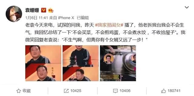 袁爸爸在演播室忙着给袁姗姗“拆台”,说闺女从来不收拾,这次录节目是最干净的一次。