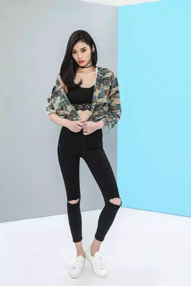 身穿比较运动风格的奚梦瑶还是蛮好看的了,破洞裤一直都是很时尚的,花外套是整体衣服的亮点了。简单的素色内搭搭配花外套很好看了。