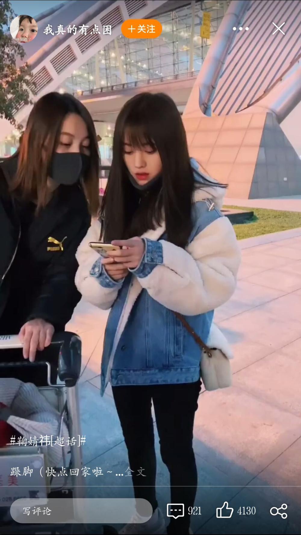 鞠婧祎与助理现身机场,半靠助理尽显少女娇憨,小奶音嚷着要回家