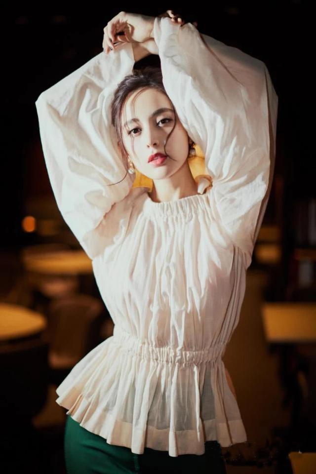 古力娜扎凹凸有致的身材凸显了衣服本身的曲线,抬头举手间,清风盈袖、美不胜收,像是一幅风景画被定格在画面之中。