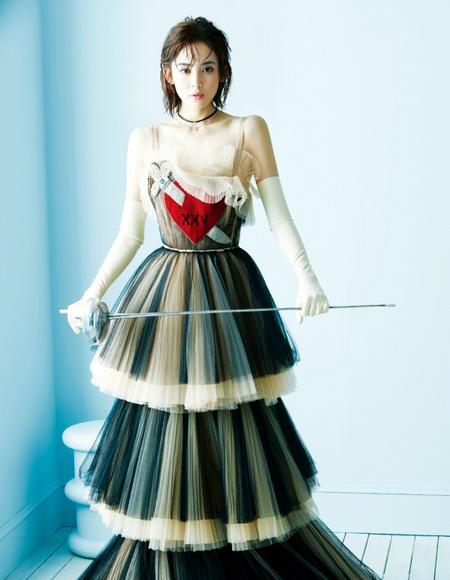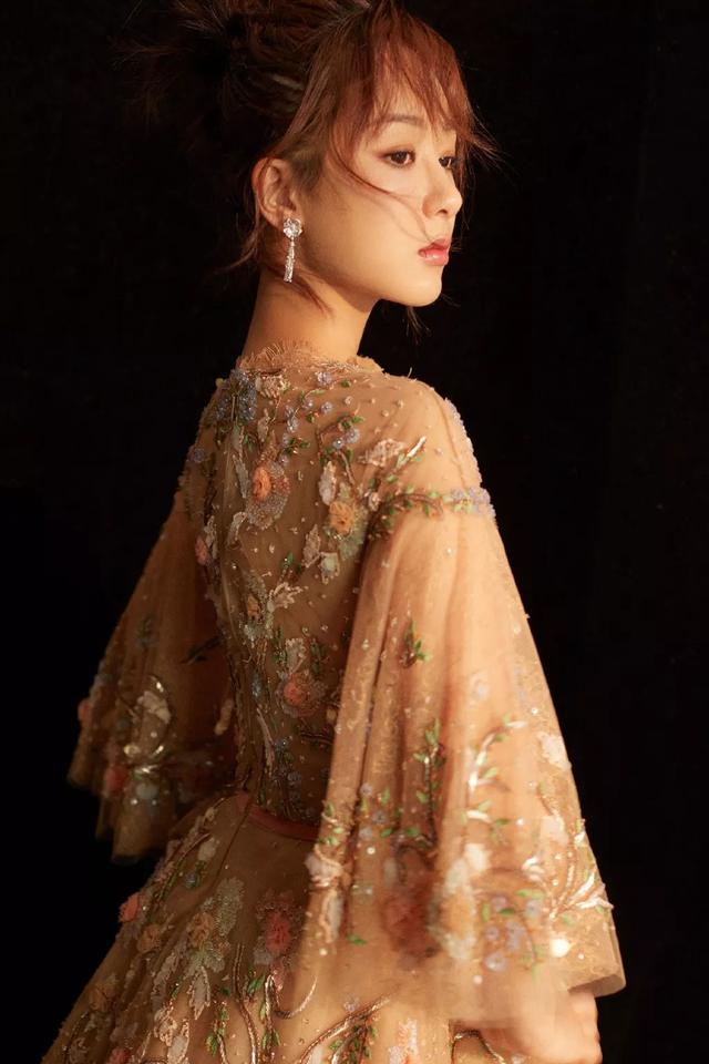 张雨绮的这袭宫廷风的纱裙,瞬间把她的强大的气场弱化了,很温柔的感觉,Bling Bling的亮片以及沿着一字领型自然垂叠的浪漫荷叶边,精致甜美又时髦。
