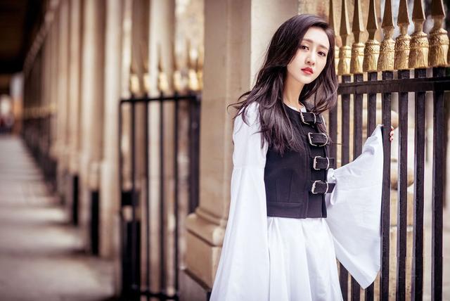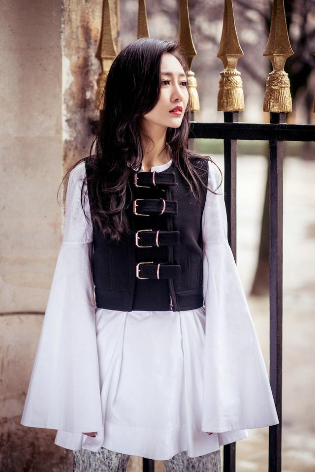 王鸥属于非常耐看的女生,她身上的气质也很出众,黑色微曲的长发随意的散落在肩上,纯白色宽袖长衫搭配黑色束身马甲,隐隐散发着欧式宫廷的古典之美。
