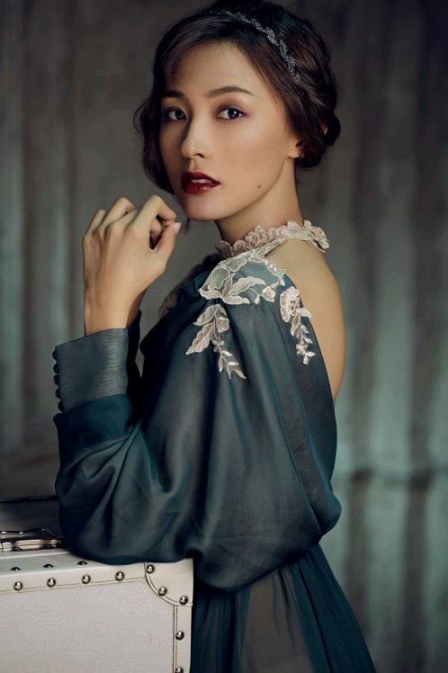平时活泼可爱的应采儿的复古装扮倒显得十分端庄,复古的头饰看起来很优雅,一身复古的裙装气质温婉动人。