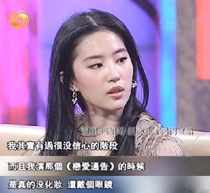 而且刘亦菲还表示自己在那个阶段的时候感觉特别没自信,不但没有化妆,还戴着眼镜,当时自己都觉得自己很丑。