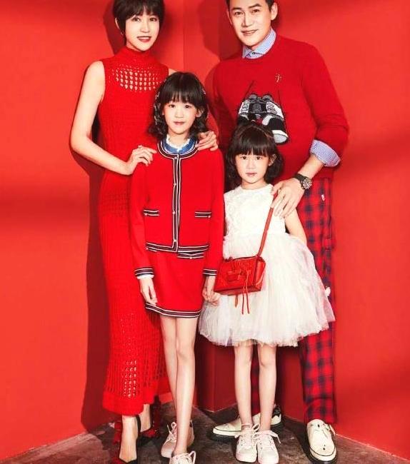 陆毅晒新年全家福,贝儿和小叶子的大长腿引人注目,腿精本人了
