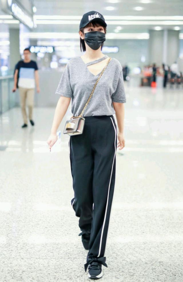 杨紫身穿灰色T恤搭配运动裤中性休闲,侧条纹裤是当下大热单品,这身搭配非常的有型,显瘦又显高。