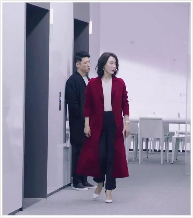 特别是当她身穿酒红色风衣闪亮登场的时候,我被她的气质给美到了,说“美到窒息”都不夸张!在电梯里和一群男士同框,这气质一看就是女大佬级别的!