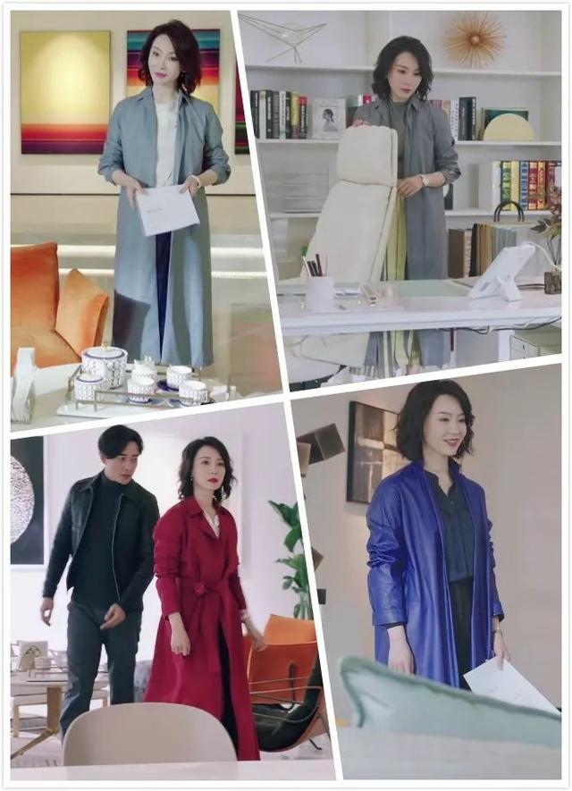 我们先来欣赏下她的风衣穿搭!陈数出镜率最高的要数这件灰色和酒红色风衣了。不管是搭配阔腿裤还是连衣裙,都非常的知性、大气!不管是穿柔和的中性灰还是穿高饱和度的酒红与宝蓝,她都能从容的穿出属于自己的强大气场!
