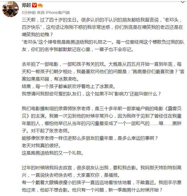 邓超发文感叹不惑之年,已被叫“老邓头”,自曝离开“跑男”原因