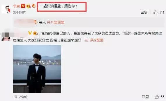 而面对不再参与录制新一季跑男的王祖蓝,很快兄弟团成员中的李晨也留言安慰表示:“一起加油祖蓝,拥抱你”,言辞中也足以让人感受到虽然王祖蓝不再参与录制新一季跑男,但在李晨这些留下来依旧参与节目录制的人的心里,他依旧是跑男家庭中的一员,跑男兄弟情不会变!