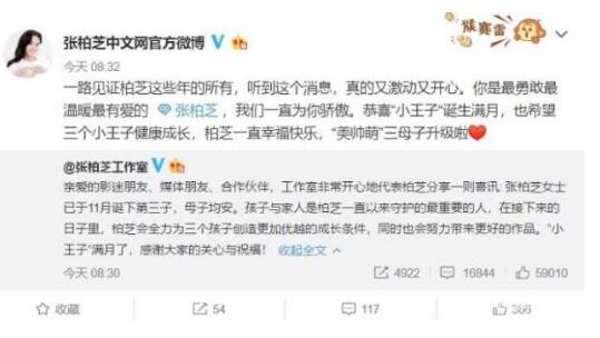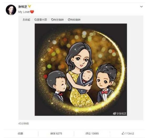 后来大家都知道后,张柏芝也没有瞒着网友粉丝,在小王子满月的时候,张柏芝发出四人合影的照片,依然没法看到小王子的样子。