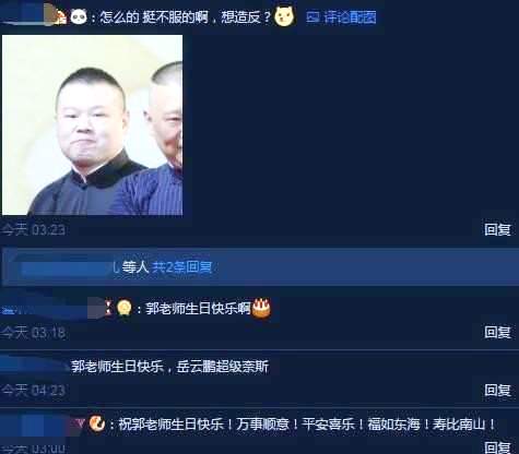 有网友在评论区调侃小岳岳的表情“怎么的,挺不服的啊,想造反?”,他的表情确实是有一点点“欠欠”的感觉,不过评论区大多数都是粉丝在祝福郭老师生日快乐,祝福德云社越来越好,大家还是非常支持德云社的演出,几乎是每场演出都是爆满的。