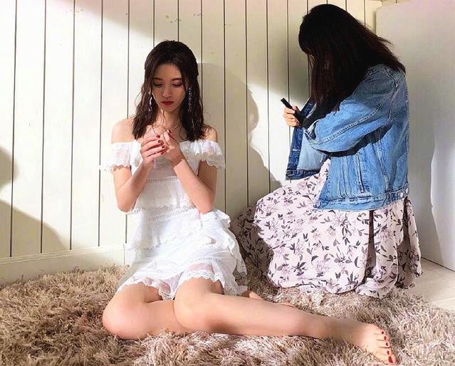 鞠婧祎长得不仅甜美,还非常仙,所以特别适合穿仙女裙,就算是坐在地上也是仙气十足,但是这个角度显得鞠婧祎的脸太小了,有种比例失调的感觉 。