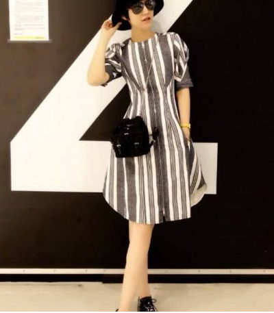 鲍蕾身穿白灰竖条纹连衣裙,脚穿黑色鞋子,与她的气质十分的搭配,黑色的帽子加上一副黑墨镜,给人一种酷酷的感觉,可优雅可酷帅。她嫁给一代男神为爱隐退,如今成了时尚辣妈!