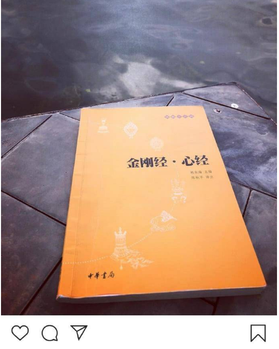 两人最早的交集有点像粉丝遇到大明星,最开始陈昱霖也只是在网上晒出崇拜吴秀波的几张合影。但自从两人在一起后,陈昱霖的照片中就没有吴秀波的身影。反而是几张晒出《金刚经.心经》的照片侧面反映出两人在一起的证据。