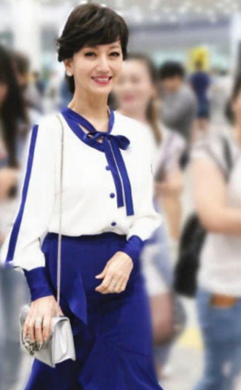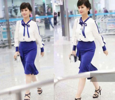 这就是日前赵雅芝现身机场时候的样子了,不知道这种打扮的她有没有一下子就触动到你们呢?只见她身穿一件蓝白色的雪纺上衣外搭上一条蓝色短裙,整身造型呈现出来的画面真的是特别的神似“学生装”吧,另外你们看当时赵雅芝穿起这双黑色绑带高跟鞋的样子也是显得特别的有女人味呢。