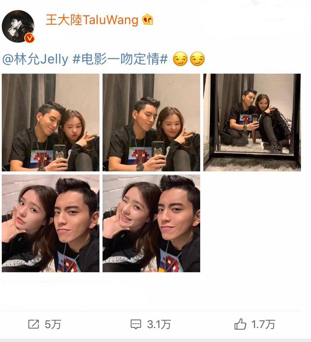 电影还没有上映,看不到新版《一吻定情》中男主角的爱情有多甜。但林允和王大陆已经甜起来了,两人互动颇多,非常可爱。王大陆还晒出和林允的亲密搞怪合照,两人都穿着一身酷酷的黑色衣服,对着镜头搞怪卖萌,cp感十足。