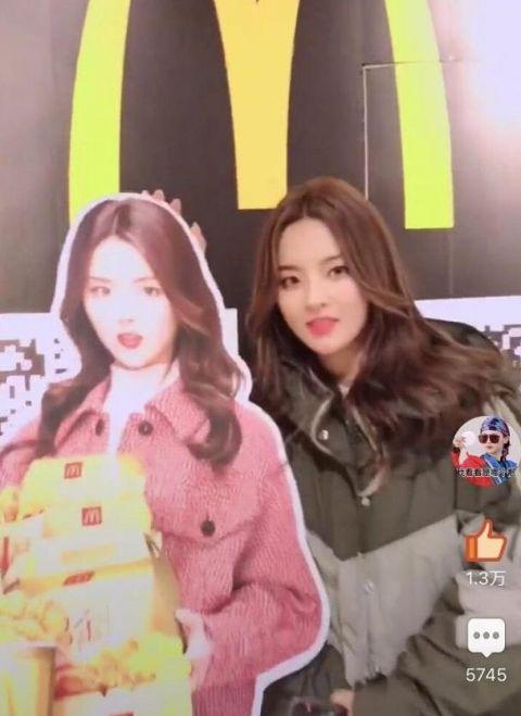 就在今天,杨超越还和麦当劳门口的自己的人形立牌合了影,拍了视频,镜头里的杨超越和立牌上的简直一模一样,拍照的工作人员都表示“比立牌还要美”,杨超越则害羞的捂起脸来。