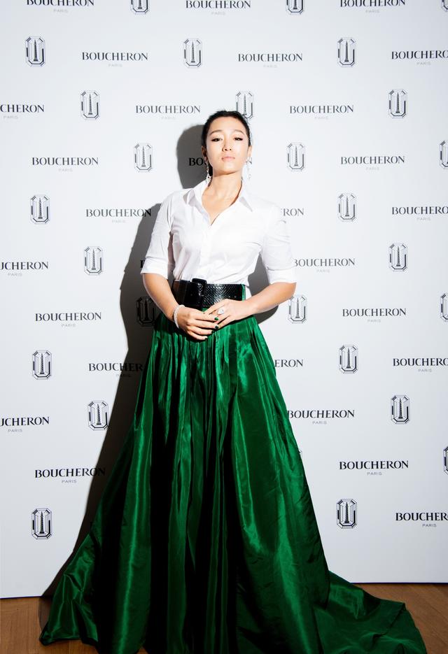 参加活动的巩俐,穿了一条绿色的高腰裙子,整个人霸气尽显,清新十足!上面是白色的衬衣,清爽许多,下面是有存在感的绿色长裙,减龄同时更显高级感。这样一条裙子其实很普通,但想要穿出巩俐这种睥睨众生的感觉,一般人真心做不到啊!