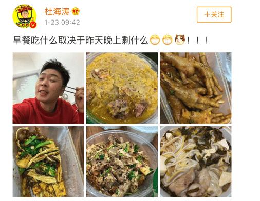 杜海涛不仅没有减肥的烦恼,平时还可以尽情享受美食的盛宴。最近,他在网上晒出了好几张食物照片,并说道:“早餐吃什么取决于昨天晚上剩什么”。一般人早餐最多就两个菜吧,但杜海涛一大早就吃5个菜,可丰富了。