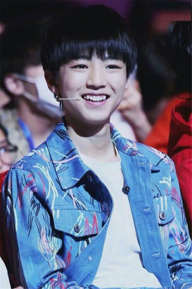 第二张:王俊凯是在舞台的下方,嘴边还有一个小话筒。王俊凯的头发还是类似的锅盖头,干净清爽的妆配上王俊凯灿烂的笑容让人十分舒服。王俊凯穿了一件蓝色的牛仔外套,外套上面有一些杂乱的条条,他们有些是红色的,有些是黄色的,有些是蓝色的,有些是紫色的等等。这些条条彰显着青春、清新、可爱。王俊凯里面穿了一件纯白色的内搭,感到色彩搭配十分和谐。王俊凯位于画面的前面,他的左边还坐了一个穿红色的男生,画面中旁边的人的红衣也是出境了,使整个画面的色彩显得不那么单调。这张照片后面中也是其他模糊的人影为画面增添了一些人气。