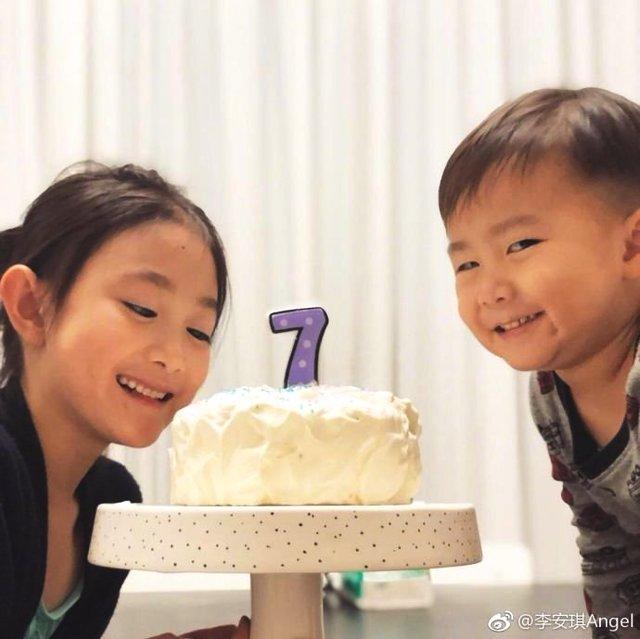 奥莉生日时的这张照片中的弟弟也是表情非常抢镜,笑容甜美的奥莉真认真的看着蛋糕,弟弟也是斜着眼睛看着镜头,这个笑容还有种十分意味深长的感觉,真是又好玩又搞怪,连小双下巴都出来了,让人忍不住想要揉揉他的小脸。