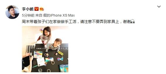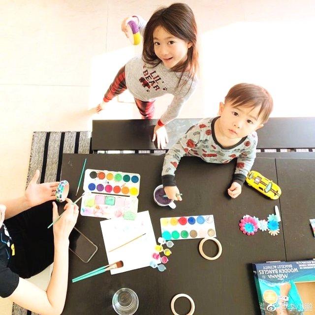 李小鹏晒出一张奥莉和弟弟一起做手工的照片,并配文称:周末带着孩子们在家做做手工活,请注意不要弄到家具上,谢谢。不过家具一团糟好像是每个有孩子的家庭的必经之路,不知道李小鹏家能不能幸免呢。
