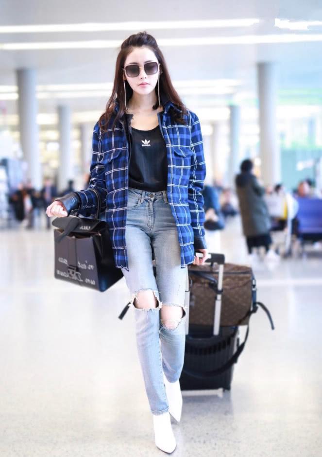 张天爱挑战土掉渣的格子衫,时尚又少女,一双大长腿实力抢镜!
