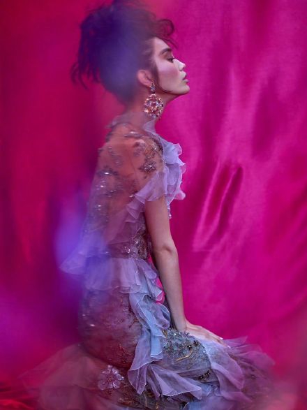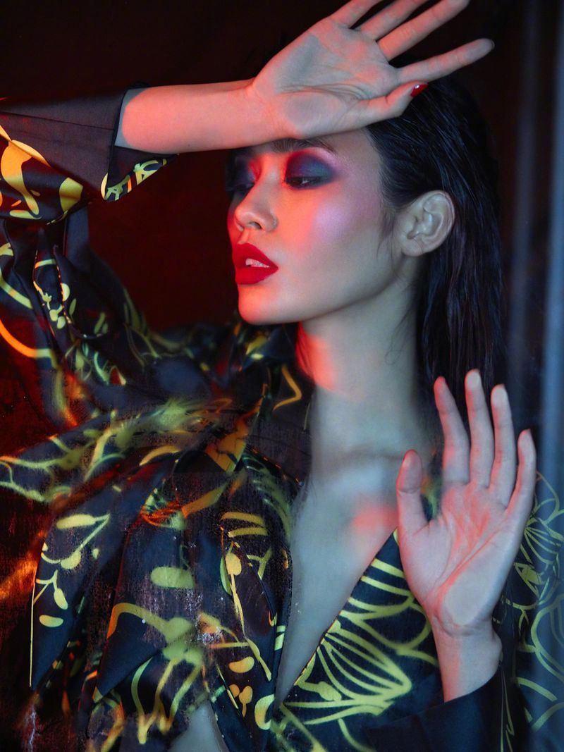 奚梦瑶登越南杂志封面,画面色彩夸张冲击感强烈,奚梦瑶造型狂野魅惑,夸张眼妆与浓烈红唇十分吸睛,展现浓浓另类异域风。