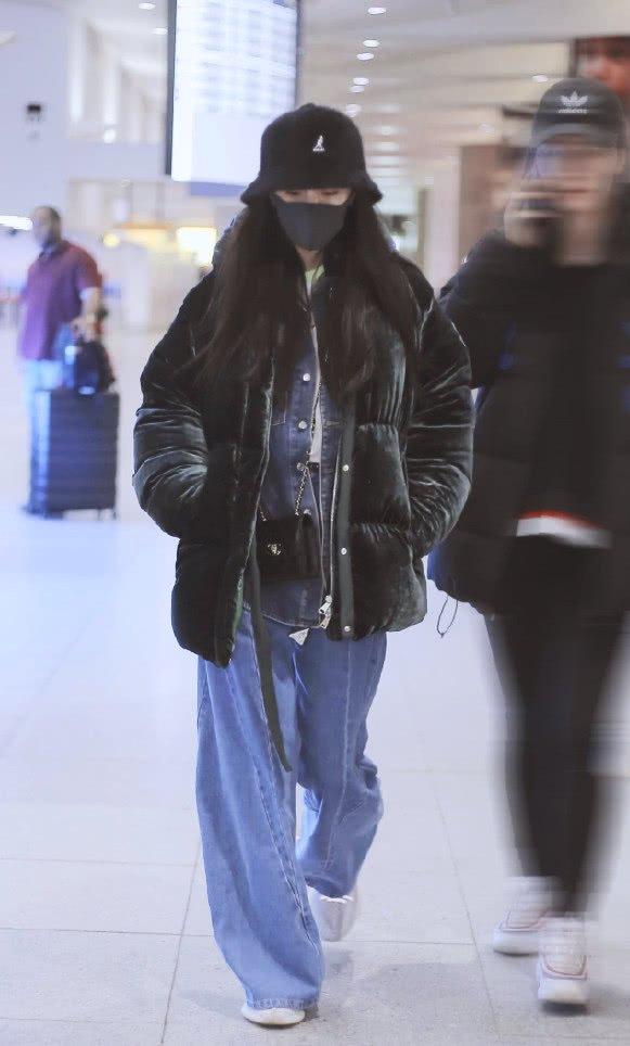 杨幂现身机场,穿15000的外套搭3000的牛仔裤,时髦极了