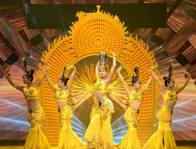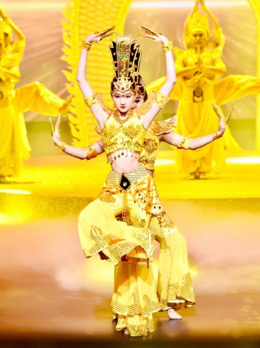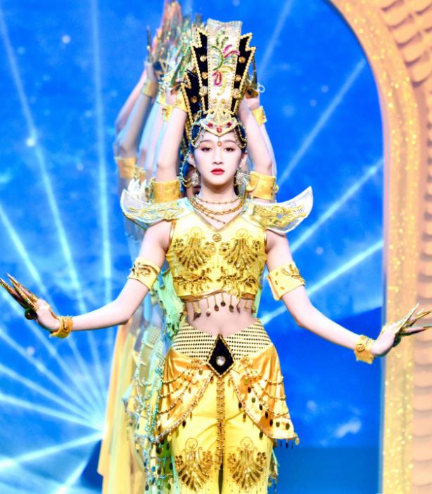不知道大家有没有看本期的《王牌对王牌》呢?她身穿金色舞蹈服再现春晚经典舞蹈《千手观音》,与众多舞蹈演员合作重现春晚经典舞蹈,这大概是今晚最亮眼的一个环节了,好惊艳!