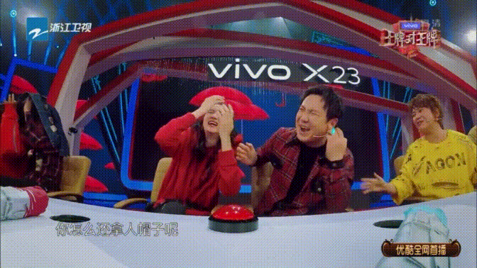 在“家喻户晓”游戏环节中,沈腾组接歌词错误受到了淋雨的惩罚,他一直努力钻到旁边关晓彤的衣帽里,一旁的马丽边笑边拍打沈腾:“你怎么还拿人帽子呢。”