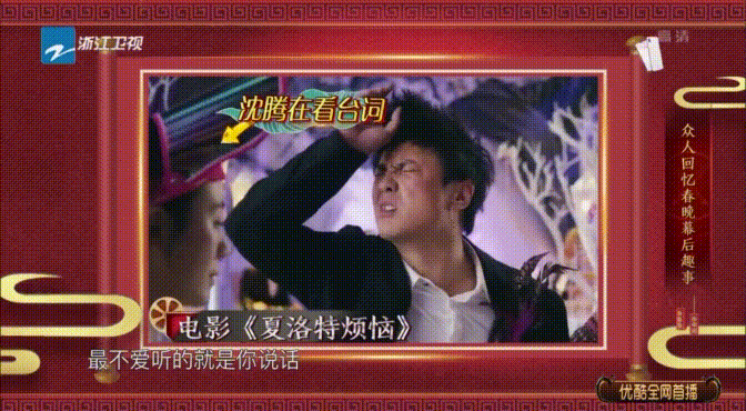 不仅如此,马丽还回忆起两人拍摄电影《夏洛特烦恼》时的趣事,拍的画面是带着马丽的右脸拍沈腾讲台词,马丽头上戴了个帽子,左脸粘着台词。沈腾也一脸无辜:“我真用功,我自己抽自己,我真着急,但我真记不住。”