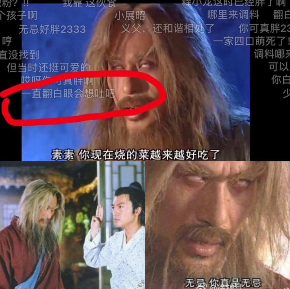 记得有一个镜头是金毛狮王谢逊被成昆打了一掌,踉跄的一瞬间眼睛就下来了,还有一幕是无忌和他爹娘要离开冰火岛回中原道别的时候,徐锦江老师一边要翻白眼一边要防止情绪上涌流眼泪,然后就有点略微穿帮了,这种穿帮真的超心酸了。