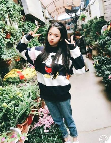 这张是杨超越长大一点的照片,照片中的杨超越穿着白色吊衫,蓝色牛仔短裤,一只手随意的插在口袋上非常有范。高扎头发的她神情恬静,那个时候素颜的她已经灵气十足了,而且身材比例也很好。