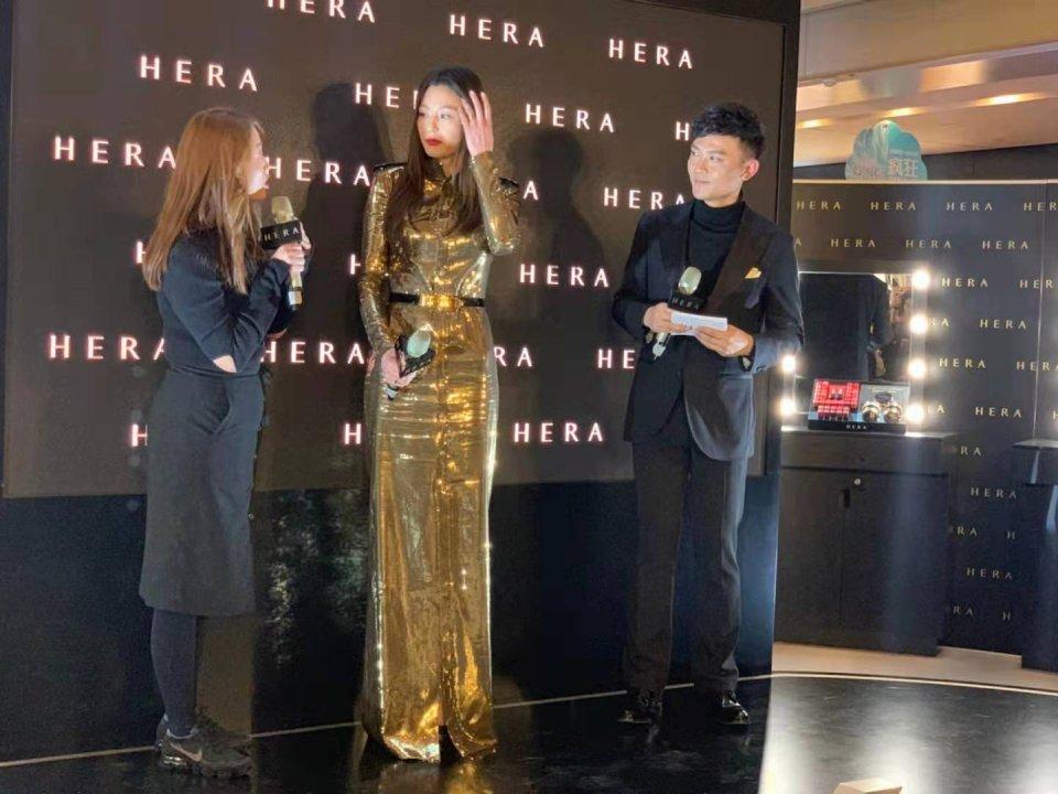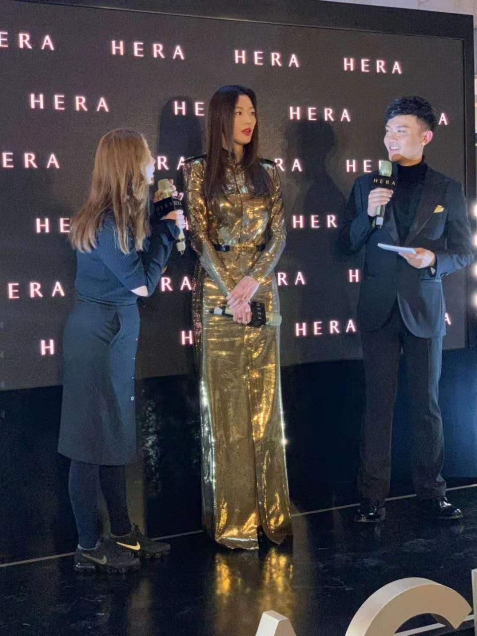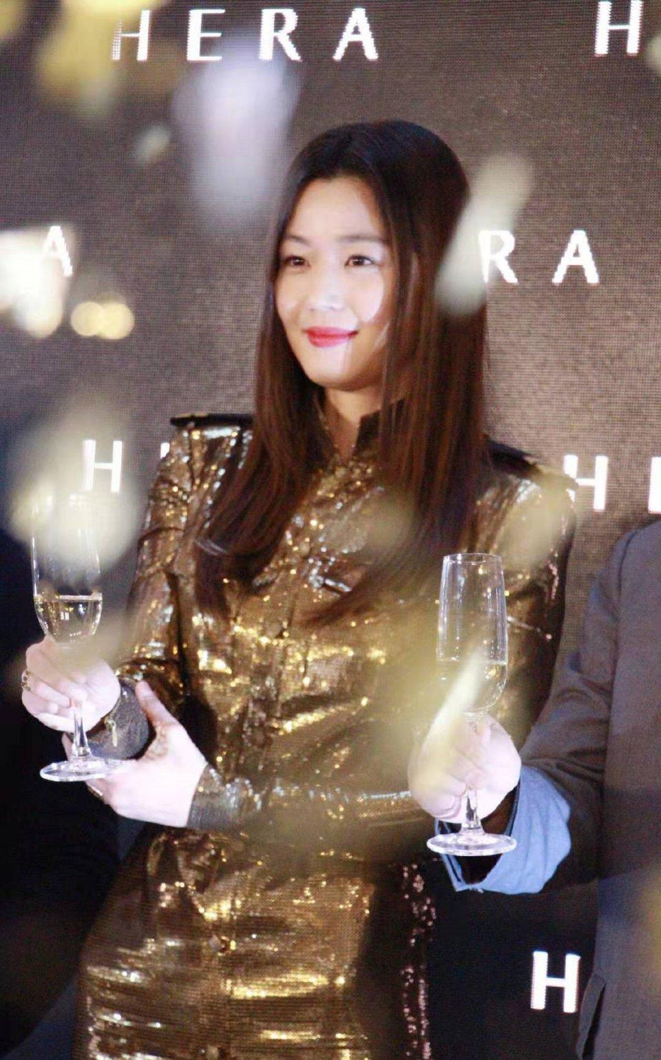 到了活动现场,全智贤换上了一条blingbling的连衣长裙,收腰包臀的设计,凸显了全智贤的好身材,十分的凹凸有致。全智贤1米7几的身高,站在主持人旁边显得气场十足。