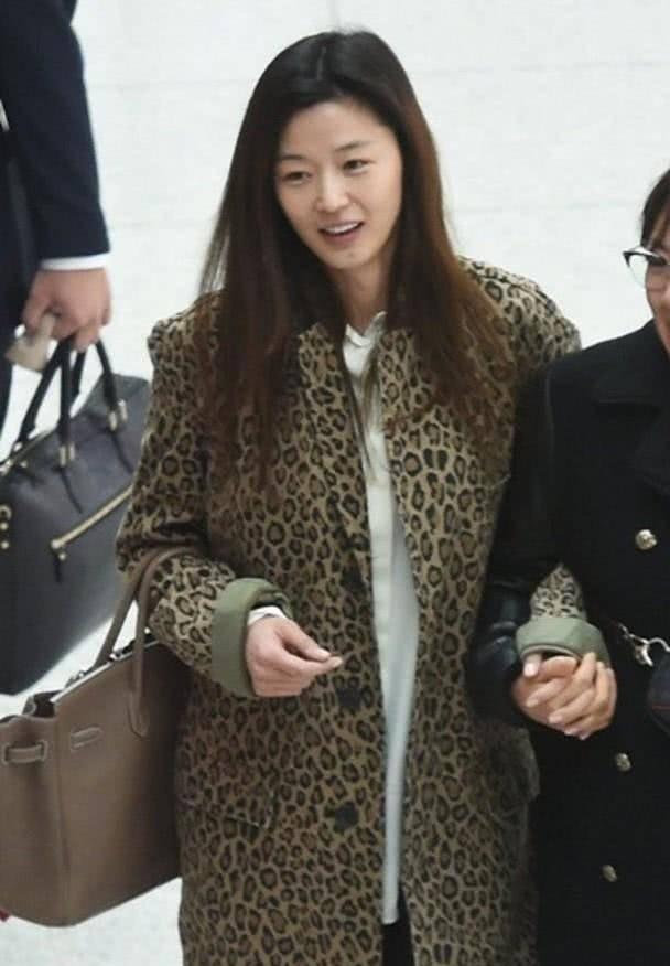 此次现身全智贤身穿豹纹大衣,内搭白色衬衫,下身搭配黑色牛仔裤和运动鞋,十分的休闲。虽然没有带妆,但是皮肤却紧致光滑,五官也依然精致好看,下巴还有一颗痘痘,果然是真实率性的全女神了。一路上和助理有说有笑,心情十分的不错。