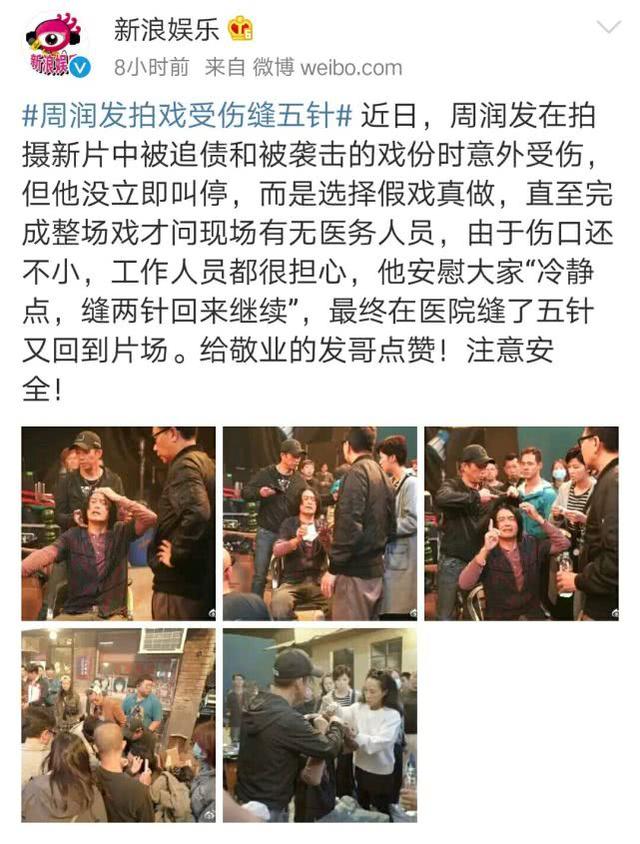 他还安慰现场的工作人员不要担心,只要去缝两针就没事,发哥真的是天使。在医院缝了5针后,他又继续回到片场,算是无缝对接上了。
