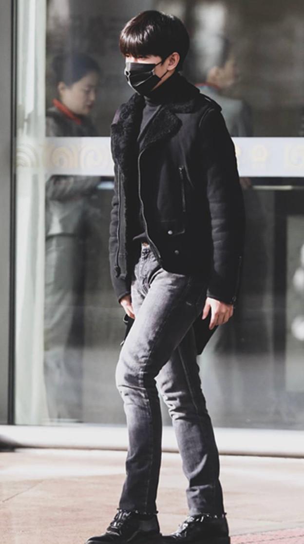 不愧是杨洋,什么样的造型都能hold住,他穿着短款的棉服,搭配黑色的牛仔裤,看起来潮酷十足,笔挺的牛仔裤的贴身设计也凸显了他完美的身材,更显得他腿长,这样看下来,这腿有两米长吧!