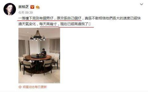3月10日张柏芝微博更新动态,声称下楼看到一个男生坐在自家餐桌前,走近后发现原来是自己的大儿子Lucas,突然发现12岁的儿子已经在不知不觉中长大了,身高已经高出自己。张柏芝身高1米65,如今才12岁的儿子已经超过她了,依照这种长势完全可以秒杀父亲谢霆锋1米74的身高。