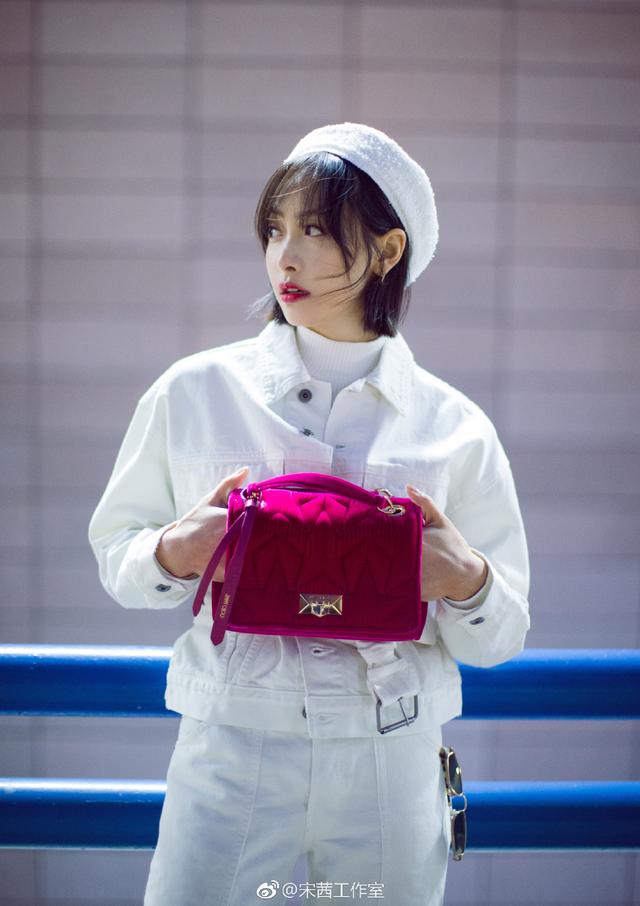 紫红的耀目红包包是是不是早get到你的小心脏了,一场精彩的时尚白色和紫红色碰撞,一下就点亮了整个造型,太有少女感了,31岁的宋茜看起来就像18岁的少女一样,青春靓丽俏皮又可爱,好美啊~