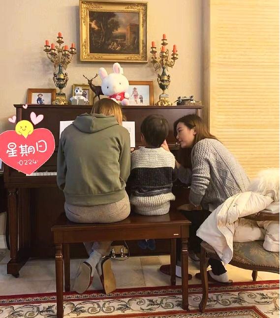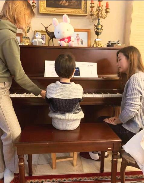 照片中的小沐沐正在两位钢琴老师的指导下认真练习钢琴,从小沐沐地坐姿和弹钢琴的手势来看,可以说是有模有样,学得相当认真,看来“虎父无犬子”这句话,说得确有道理。