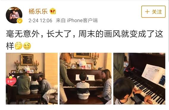 汪涵妻子杨乐乐于2月24日午间晒出一组儿子小沐沐的近照,并十分幽默地配文称:“毫无意外,长大了,周末的画风就变成了这样”。